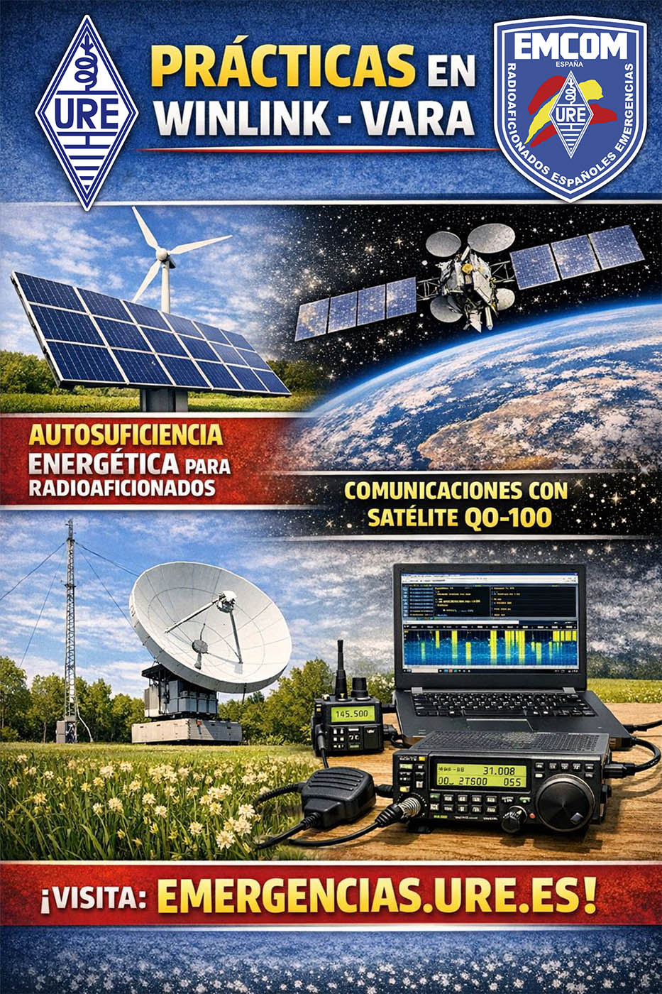 El Grupo EMCOM ESPAÑA, integrado en la Vocalía de Emergencias de la Unión de Radioaficionados Españoles (URE), promueve la preparación técnica y operativa de los radioaficionados para apoyar, cuando sea requerido, las comunicaciones de emergencia y la resiliencia de las redes de radio.2. Objetivos del programa 2026